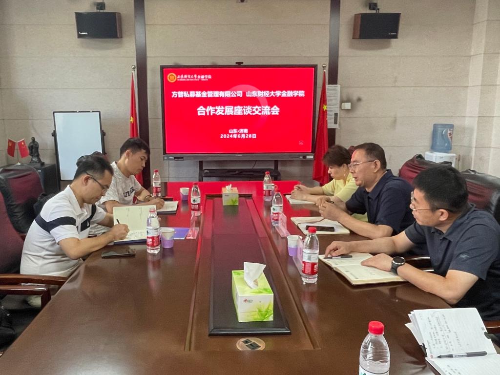6月28日上午,珠海横琴方普私募基金管理有限公司(以下简称“方普投资”)合伙人刘宇、指数业务负责人高建隆到访金融学院进行座谈交流,聚焦探索“访企拓岗”校企合作新模式。学院党委书记吴红文、党委副书记康亚通、研究生辅导员许静、就业办主任徐洁参加座谈。