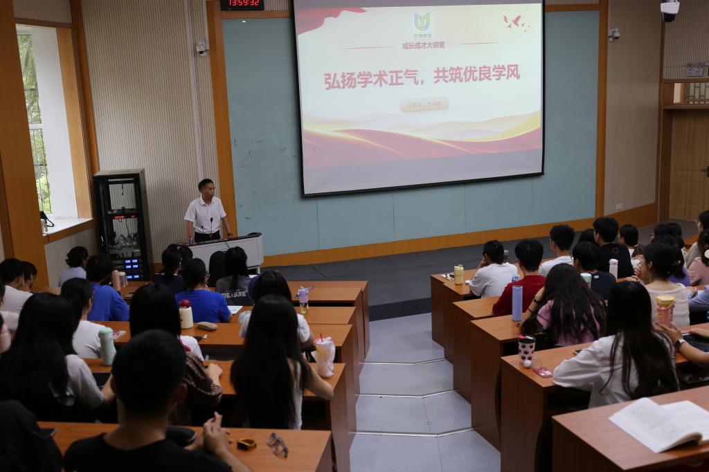 为帮助金融学院2024级研究生新生树立正确的科研态度,培养优良的学术作风,9月20日下午,山东财经大学“成长·成才大讲堂”之“弘扬学术正气,共筑优良学风”主题讲座在舜耕校区第三阶梯教室举办。本次讲座由金融学院党委副书记李开传主讲,2024级全体研究生参加讲座。