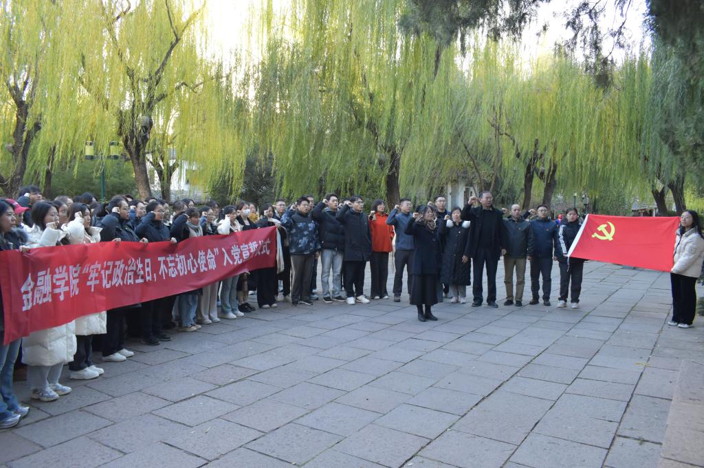 为加强新发展党员的党性教育,明确党员身份,坚定共产主义理想信念,增强责任感与使命感,山东财经大学金融学院于11月28日下午举办了“牢记政治生日,不忘初心使命”入党宣誓仪式。党委书记吴红文、副书记康亚通、李开传及各支部书记出席,与新接收的73名预备党员共同见证了这一庄严时刻。