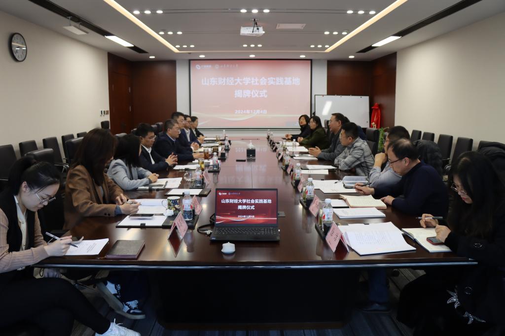 随后,吴红文和李战吉共同为“山东财经大学金融学院社会实践基地”揭牌。双方就下一步在人才培养、学术研究、党建活动、专业培训等领域的合作事项展开了深入交流。双方一致认为,通过共建社会实践基地,将为学生提供更多的实践机会,为企业提供更多的智力支持和人才保障。
