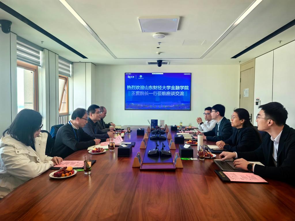 牛瑞兴介绍了京博集团的发展历程和企业的整体情况,希望双方在现有基础上进一步深化校企合作。李劲松深情回顾了在校学习期间的美好时光,表示毕业后时刻关注学校和学院的发展,对学院目前取得的成就表示由衷地高兴,对学院多年以来对校友的支持表示感谢。他简要介绍京博控股集团产融资本投创事业部发展情况,希望与金融学院在绿色金融、数字金融、养老金融、碳金融等方面开展合作研究,同时在创新人才培养模式、智库建设等多个领域开展深入合作,实现互利共赢、共同发展。