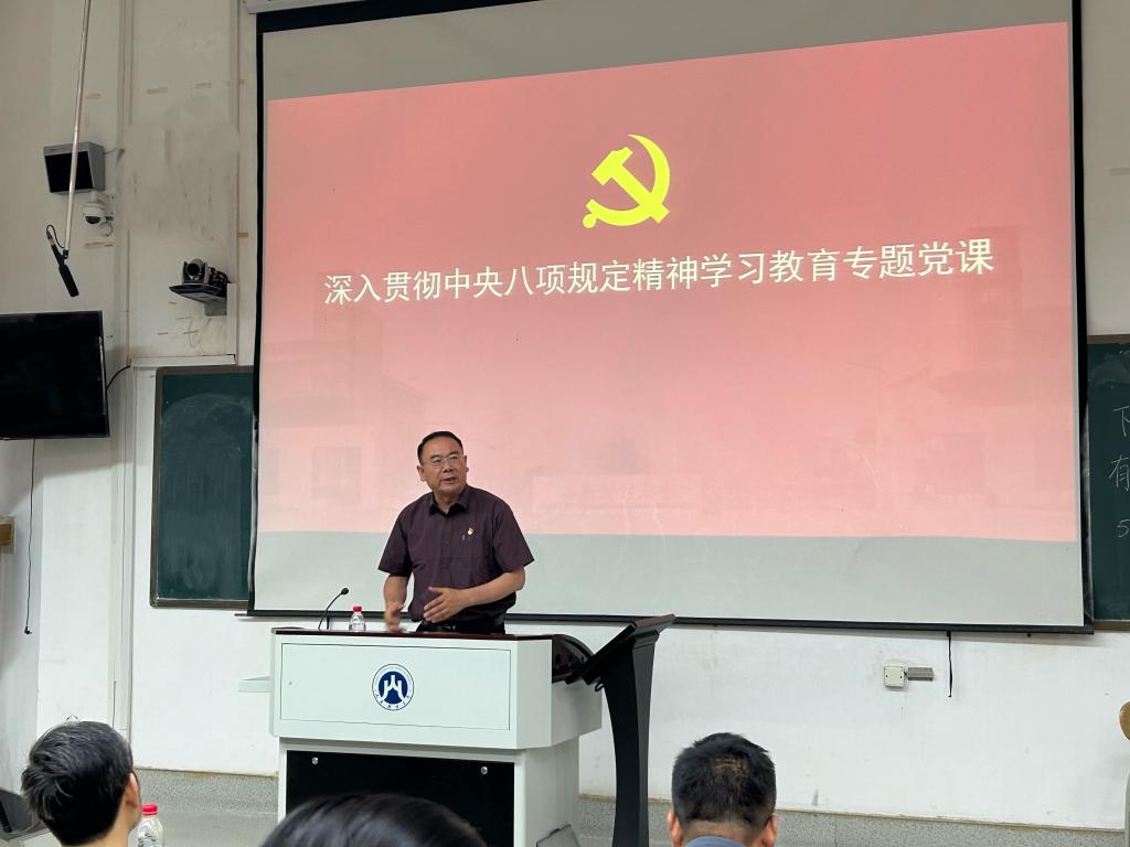 5月22日下午,金融学院党委书记吴红文在舜耕校区为全院教工党员讲授了“深入贯彻中央八项规定精神,推动作风建设常态长效”的专题辅导课。学院全体教职工党员100余人参加了学习。