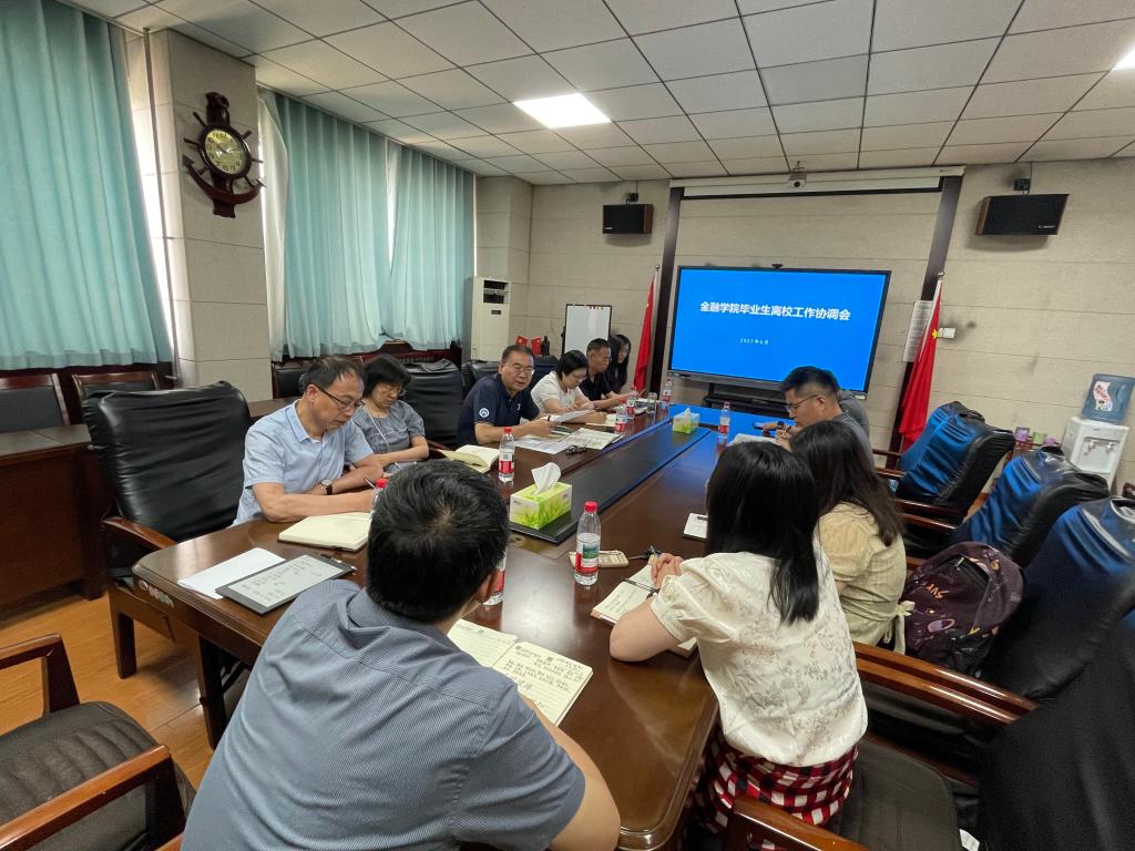 为扎实推进2025届毕业生离校和就业服务工作,确保金融学院毕业生安全、文明、有序离校,学院于6月5日在舜耕校区金融学院第三会议室召开毕业生离校工作协调会。会议由学院党委书记吴红文主持。学院党委班子成员、学院办公室成员、毕业班辅导员参加会议。