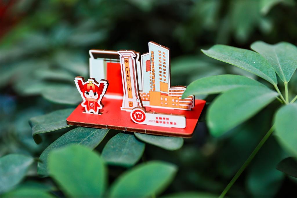 礼轻情意重,以物寄相思。金融学院为毕业生们精心定制了一份别致的礼品,以实木制成的小摆件,上面雕刻着同学们无比熟悉的校园元素——图书馆、金融楼以及学院的吉祥物。每当毕业生们看到这个摆件,在金融学院求学的时光便会历历在目,那是他们人生中最快乐而纯粹的岁月。