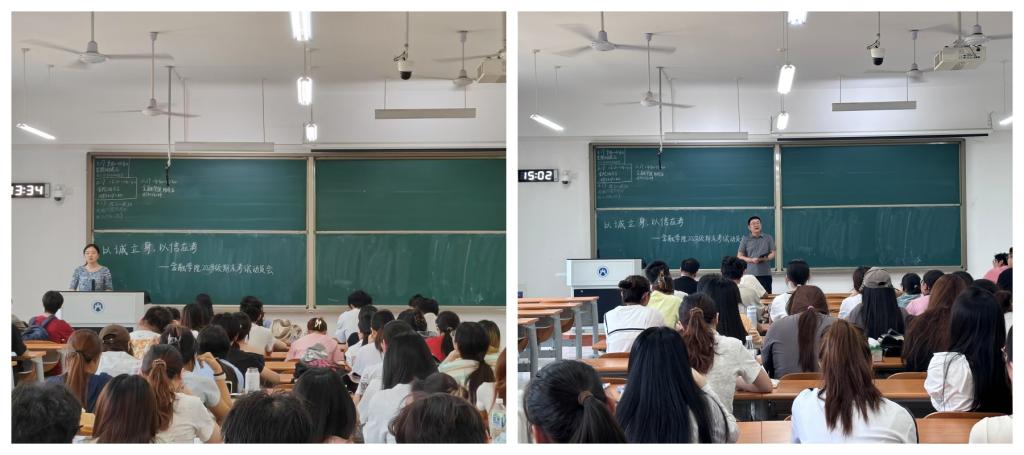 期末考试前夕,学院各年级辅导员组织召开“诚信考试”主题班会,通过政策宣讲、案例警示、签订《诚信考试承诺书》等形式,引导学生树立正确的考试观念,增强诚信意识。同时,学院向全体学生发出倡议,号召学生党员、学生干部主动亮明身份,以身作则,接受监督,带动全院学生共同维护公平公正的考试环境。