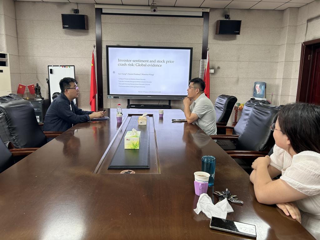 7月15日上午,由山东财经大学金融学院和山东省金融产业优化与区域管理协同创新中心共同主办的第47期“泰山金融讲坛”在舜耕校区金融学院314会议室举行。讲座由金融学院执行院长王营主持,英国爱丁堡龙比亚大学讲师王文钊应邀做客讲坛并分享其研究成果“Investor sentiment and stock price crash risk: Global evidence”。金融学院部分师生参加了此次讲座。