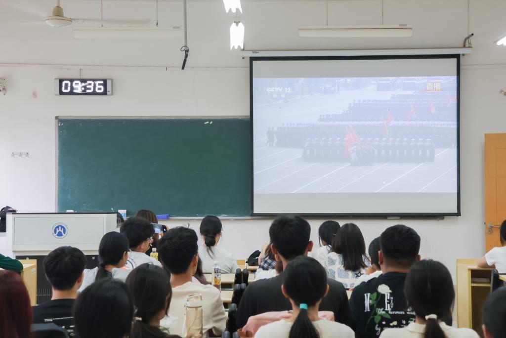 学院组织全体新生开展爱国主义主题教育,集中观看纪念中国人民抗日战争暨世界反法西斯战争胜利80周年阅兵式。强化了新生对自我成长的主动性与责任感,引导新生积极向党组织靠拢,厚植家国情怀。