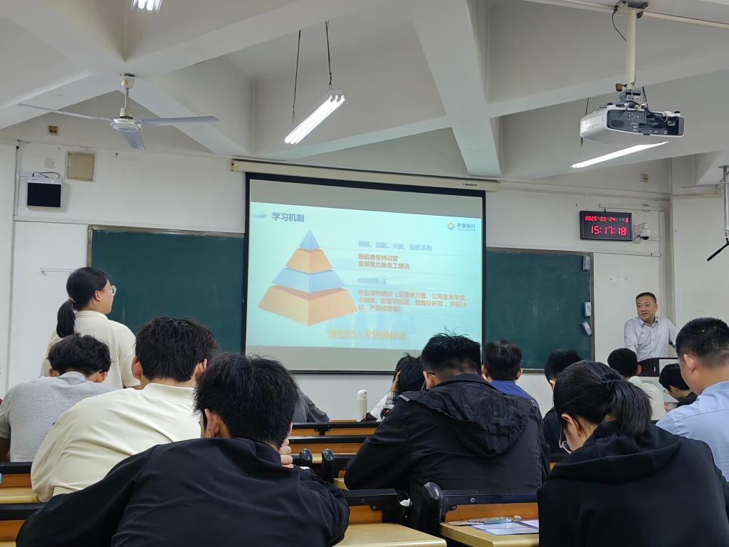 座谈会结束后,齐鲁银行专场招聘宣讲会在金融楼举行。宣讲会现场气氛热烈,帮助学生更好地了解银行行业的职业需求和发展前景,为学生的就业选择提供了有益的参考。