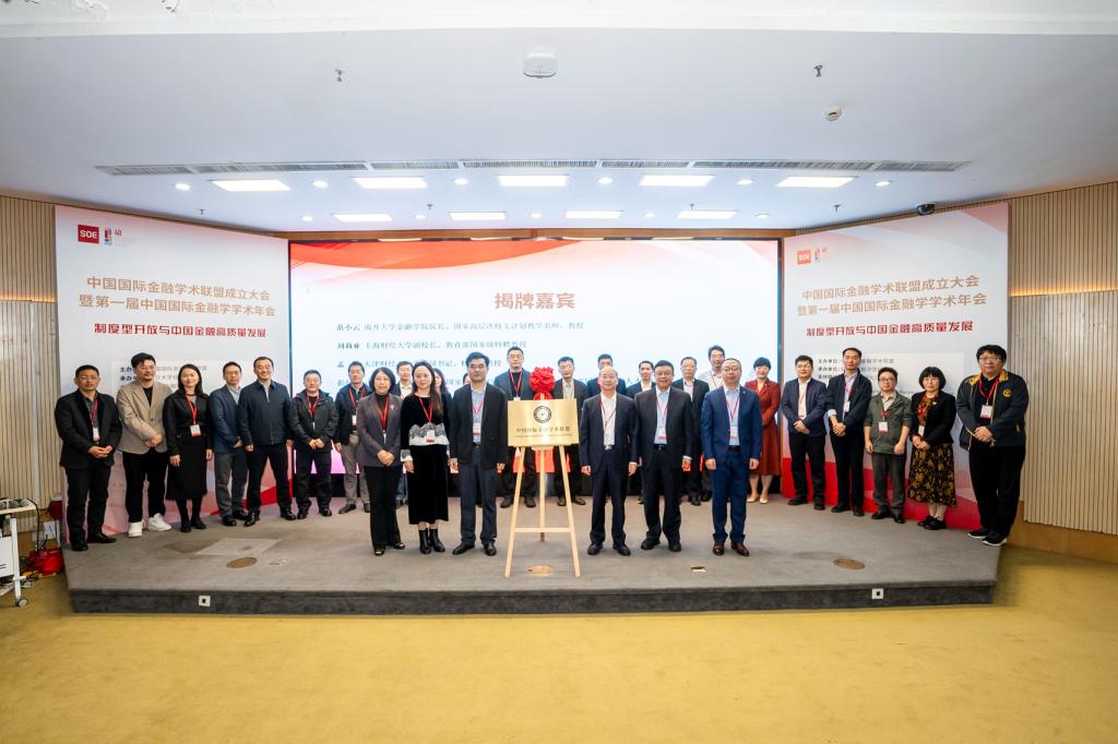 揭牌仪式环节由南开大学金融学院院长范小云、上海财经大学副校长刘莉亚、天津财经大学校长孟昊、山东财经大学副校长彭红枫、湖南大学原副校长杨胜刚、厦门大学特聘教授朱孟楠共同作为揭牌嘉宾,与22位联盟理事单位代表及支持期刊代表共同见证这一国际金融学术领域的重要时刻。