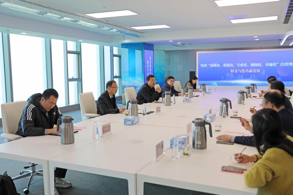 在日照市财金控股集团,我校校友、集团党委书记、董事长李玉亮,总经理李杰携主要业务板块负责人对金融学院一行的到来表示热烈欢迎。李玉亮介绍了日照财金控股集团作为日照市重要的国有资本投资运营平台,其业务涵盖产业投资、金融服务、园区运营、基础设施建设等多个维度,是推动当地产业升级和经济发展的重要引擎。他系统阐述了财金集团的发展历程、核心功能定位以及服务全市重大战略的实践路径,重点介绍了集团在支持科技创新、培育新兴产业、推动城市更新、助力乡村振兴等方面的战略布局和重点项目,集团相关部门负责人也分享了在项目遴选、投后管理、资本运作、国有资产保值增值等方面的专业见解和运作模式。