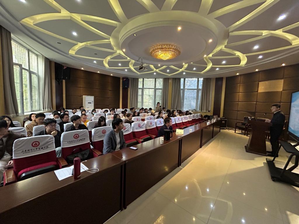 11月11日下午,第四期“明德经世大讲堂”在山东财经大学舜耕校区金融学院学术报告厅成功举办。本期“明德经世大讲堂”由山东财经大学主办,金融学院、大模型研究院、科研处和经济与管理评论编辑部承办。本次讲座以“习近平经济思想的生成逻辑、学理阐释与价值意义”为主题,学院特邀民盟中央研究室副主任、北京交通大学国家经济安全研究院研究员温华军担任主讲嘉宾,讲座由金融学院执行院长王营主持。