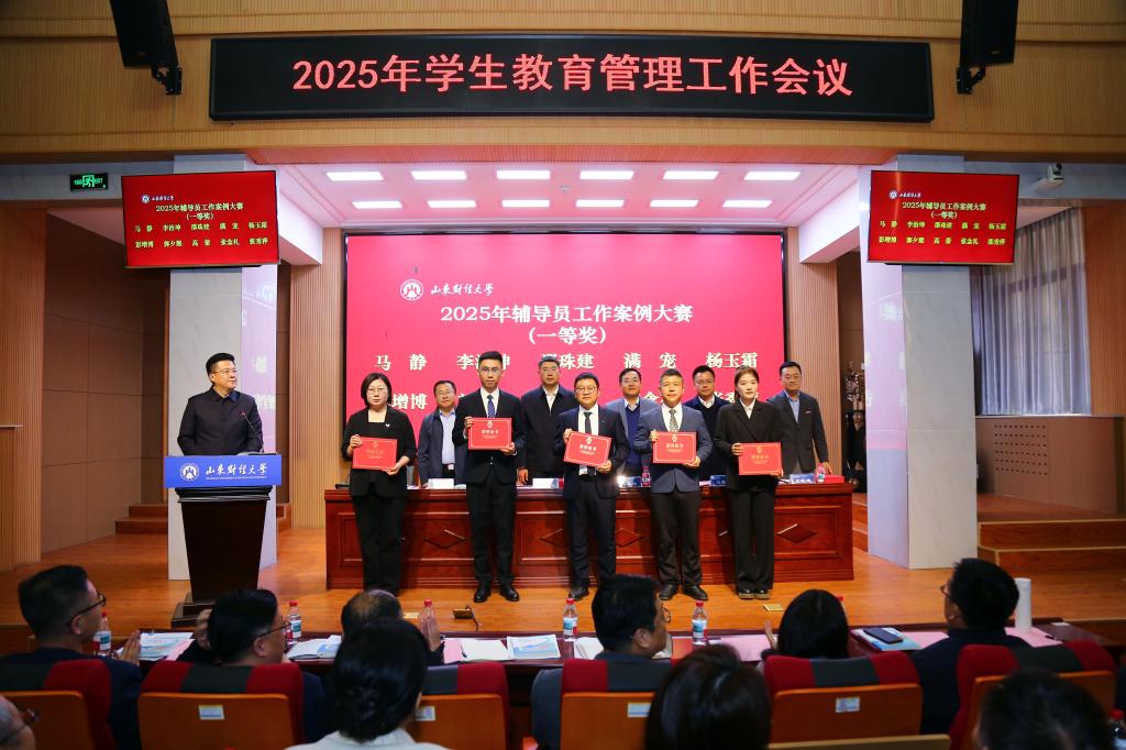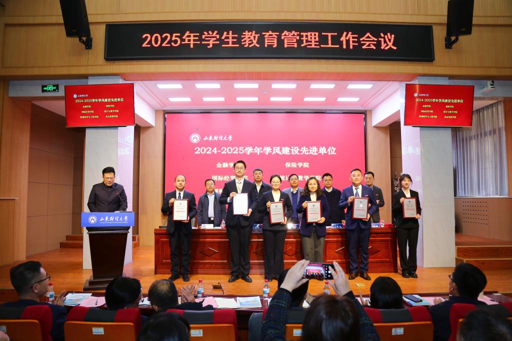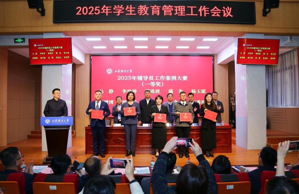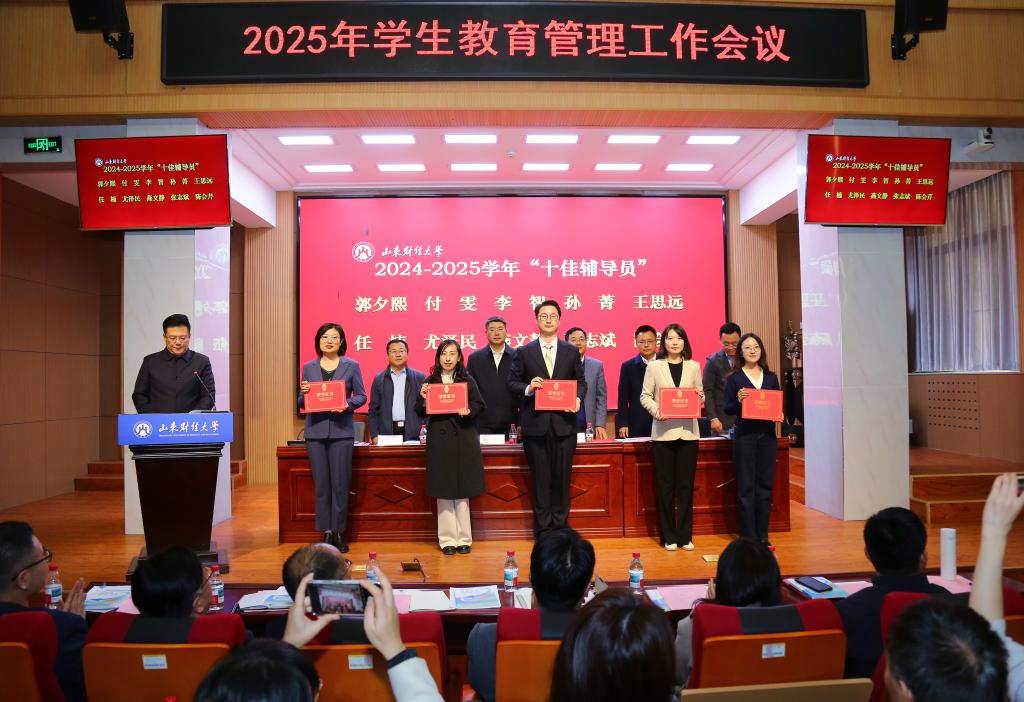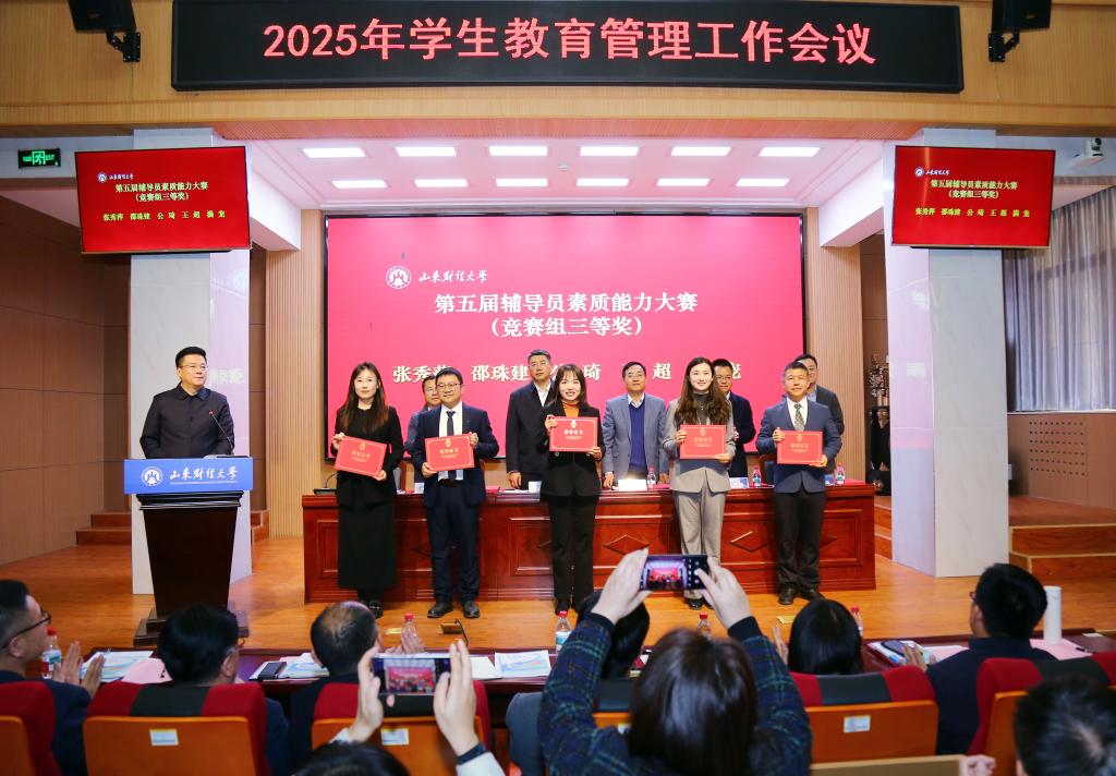 会议对在学生教育管理工作中表现突出的先进集体与个人进行表彰。金融学院院凭借扎实的学风建设成果与优秀的教师团队力量,斩获多项荣誉。我院荣获2024-2025学年学风建设先进单位;郭夕熙老师荣获2024-2025学年“十佳辅导员”称号;李治坤、邵珠建、郭夕熙老师荣获2025年辅导员工作案例大赛一等奖;邵珠建老师荣获第五届辅导员素质能力大赛三等奖。