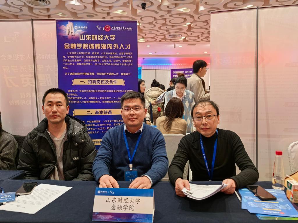 在人才招聘会现场,共有北京大学、中国人民大学、对外经贸大学等国内一流高校三十多位博士来到学院展台进行咨询,大部分博士表现出对来学院工作的强烈意愿,其中有些博士达到了预聘制副教授条件并与学院达成了初步意向。三位老师耐心解答参会博士提出的各类问题,欢迎他们加盟金融学院,投身于立德树人、教书育人的伟大事业中,实现学院发展和个人价值双赢。现场气氛热烈,收获颇丰。