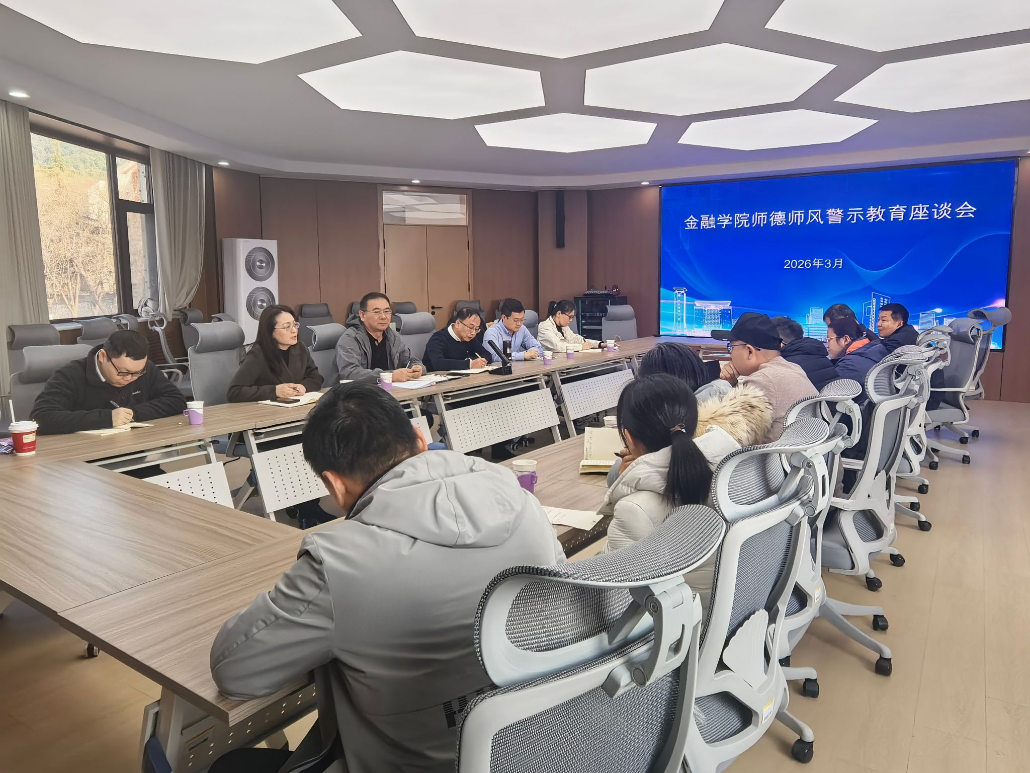 为深入贯彻落实习近平总书记关于教育的重要论述,切实加强学院教师队伍建设,强化师德师风底线思维。近日,金融学院召开师德师风警示教育座谈会。会议由学院党委副书记朱翠珍主持,学院领导班子成员、系(中心)主任、教职工代表参加会议。