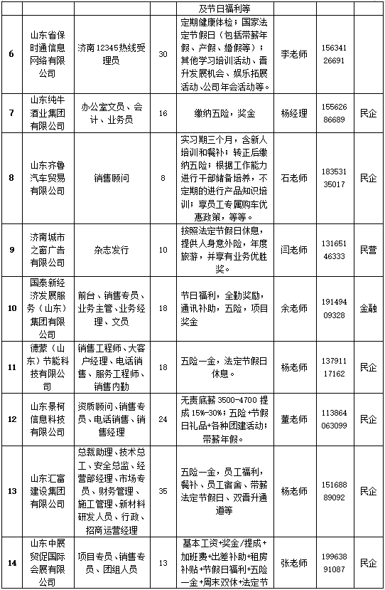 届时,中材人工晶体研究院(山东)有限公司、山东中农联合生物科技股份有限公司、齐鲁技工学校、佳宝乳业、博科控股集团、山东小鸭精工机械等近70余家央国企、上市公司、民企现场招贤纳士。岗位涉及研发、总裁助理、人事专员、汽车制造、财务管理、教师等各类岗位1600多个,薪资及福利待遇优厚。